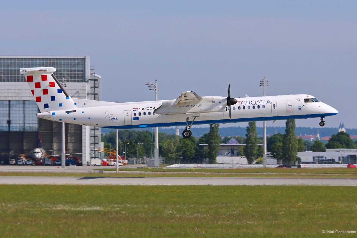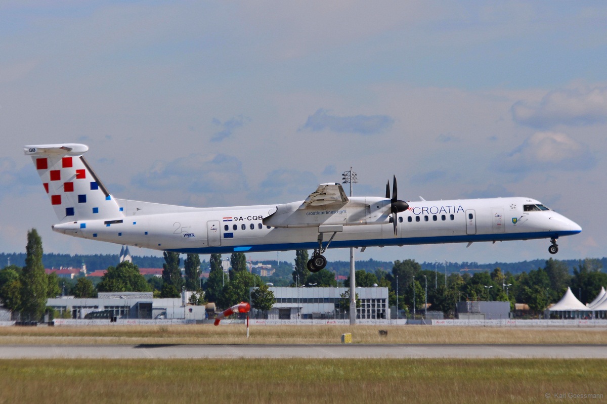 9A-CQA "Slavonija" / Croatia Airlines / DHC 8-402Q in MUC bei der Landung aus Split (SPU) 12.06.2014