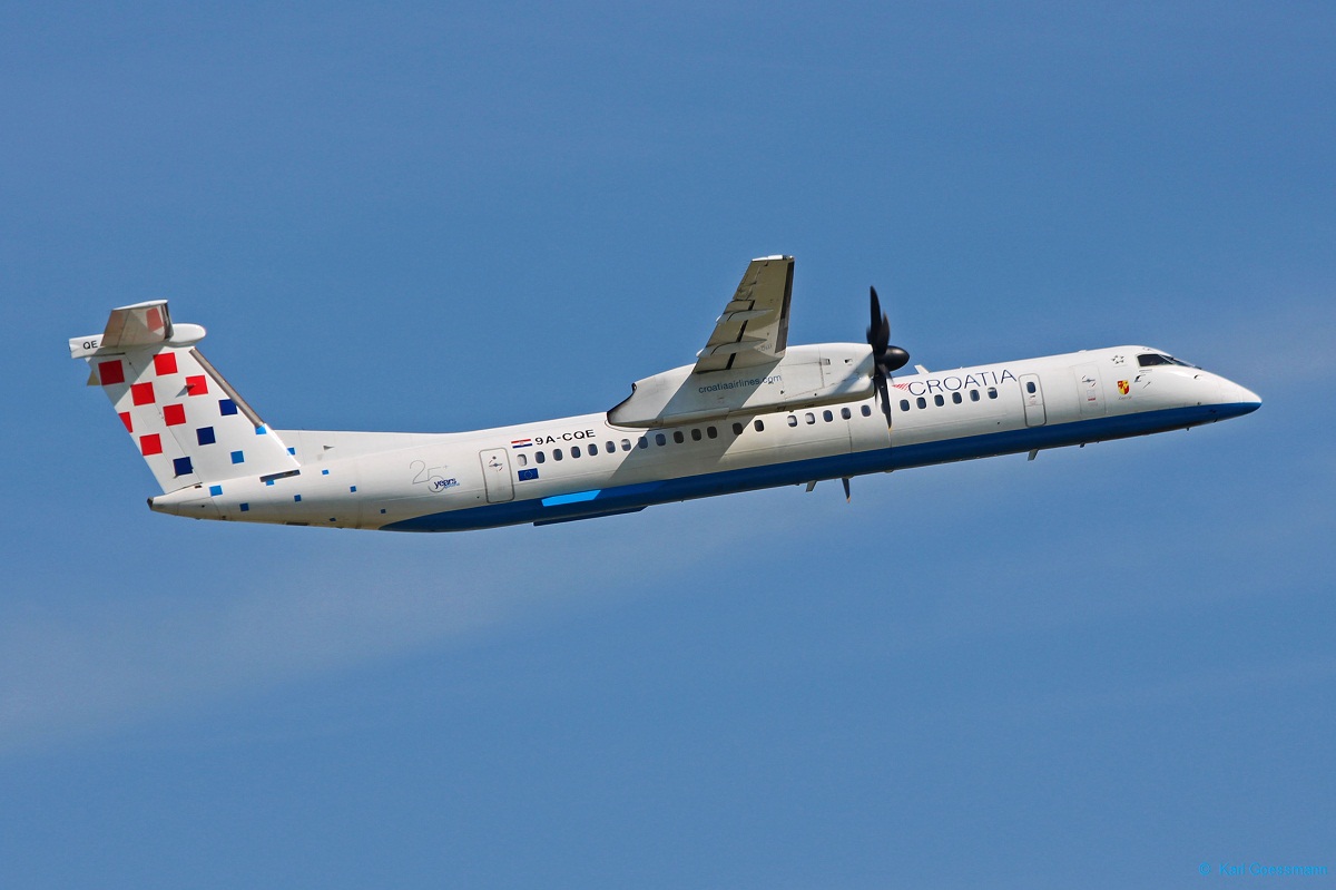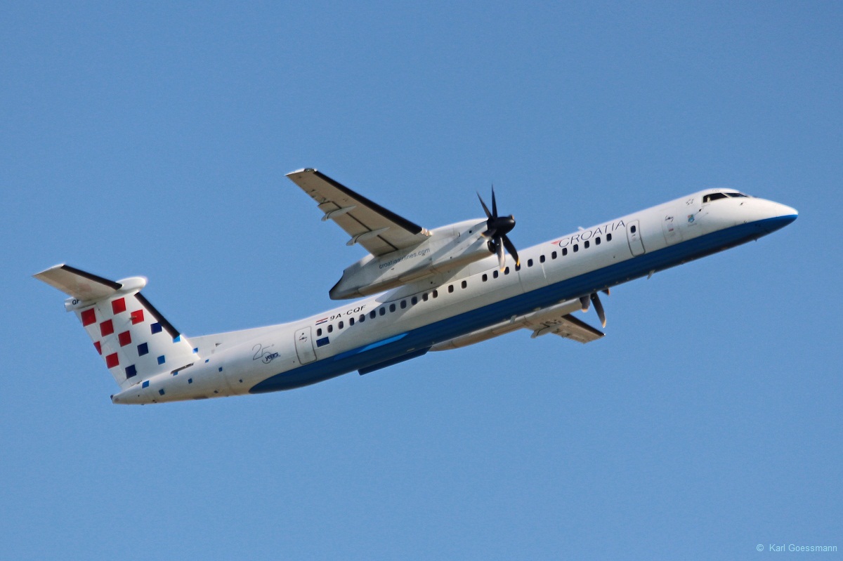 9A-CQE "Zagorje" / Croatia Airlines / DHC 8-402Q in MUC im Steigflug nach Split (SPU) 04.06.2014