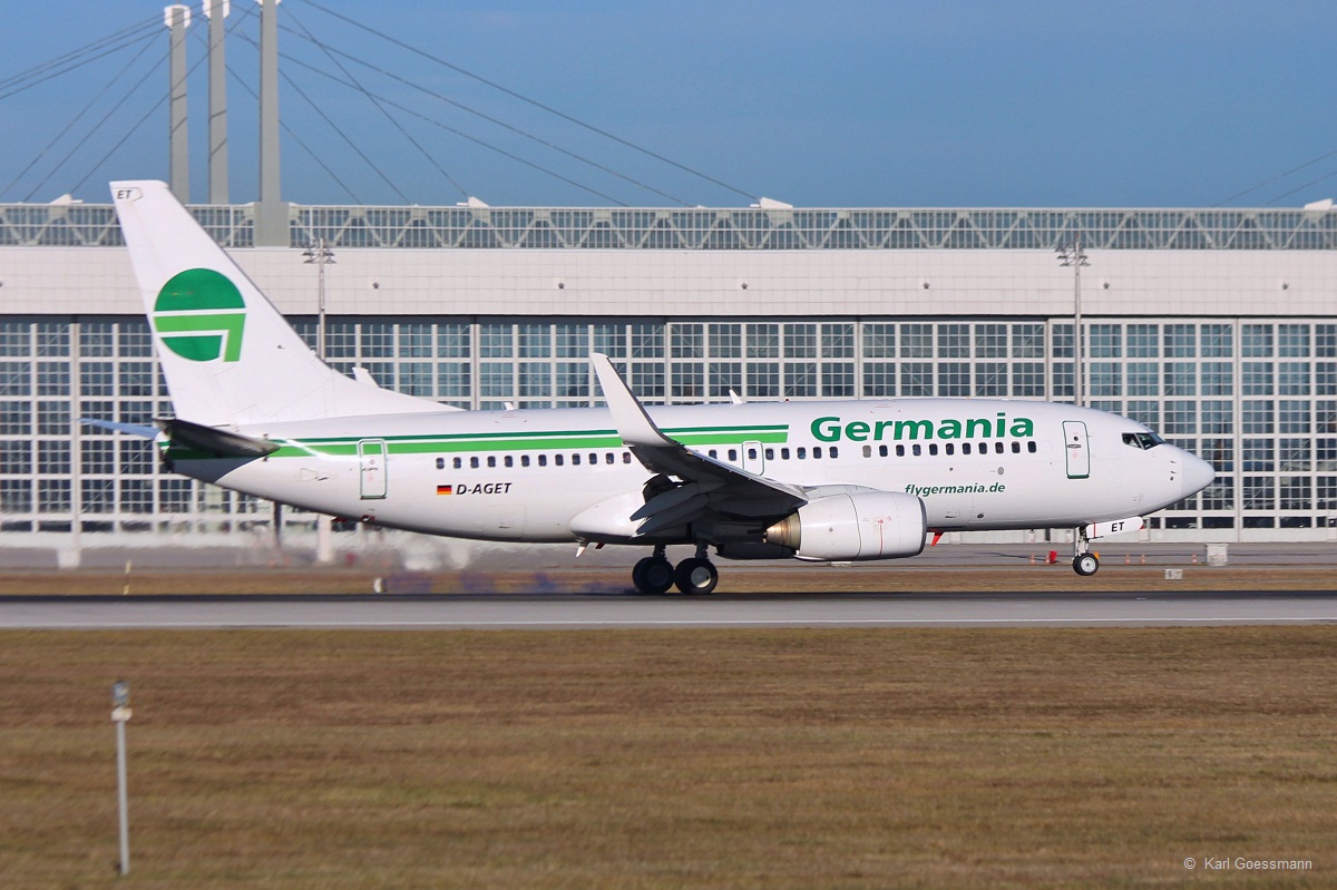 D-AGET / Germania / B737-75B(W) in MUC bei der Landung aus Thessaloniki (SKG) 28.12.2013