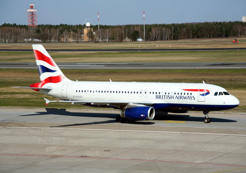 British Airways A 320-232 G-EUUZ kurz nach der Landung in Berlin-Tegel am 02.04.2010