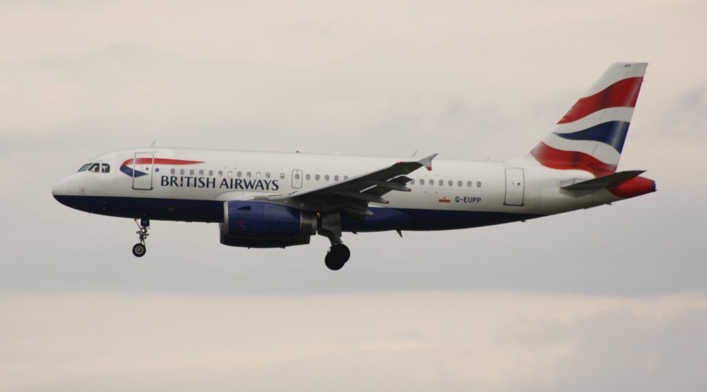 British Airways A 319-131 G-EUPK kurz vor der Landung in Stuttgart am 10.03.2010