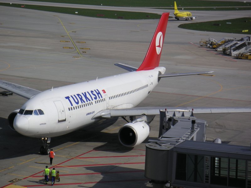 Ein Airbus A 321-200 der Turkish Airlines rollt in Richtung Startbahn auf der eine Boeing 737-300 der Lufthansa steht. Aufnahme vom 12.07.2007. Björn Berg