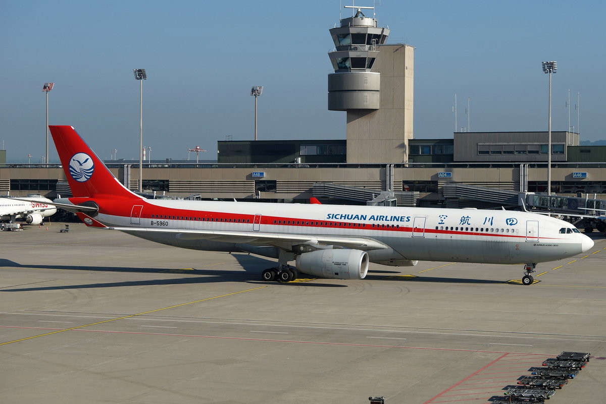 Sichuan Airlines Airbus A330-343 B-5960, cn(MSN): 1579, Zürich-Kloten Airport, 05.09.2018.