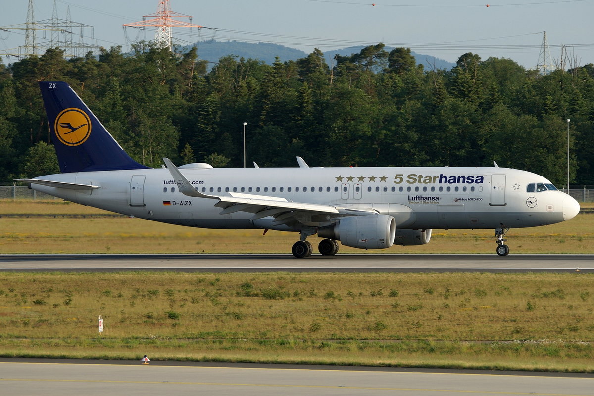 Ein A320 D-AIUO mit Sharklets der Lufthansa beim Start in Frankfurt, im Hintergund befindet sich eine MD-11F D-ALCN der Lufthansa Cargo auf dem weg zum Line-up der Startbahn West. Die Aufnahme entstand am 6.8.16 Jens Hubers