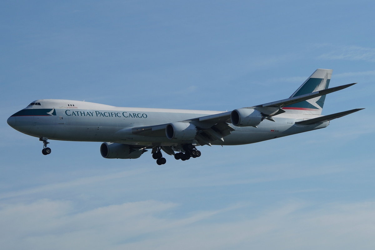 LX-VCH Boeing 747 der Fluggesellschaft Cargolux hat vor kurzem vom Flughafen Luxemburg abgehoben und fliegt über den Bahnhof von Luxemburg hinweg seinem Ziel entgegen. 17.09.2016 De Rond Hans und Jeanny