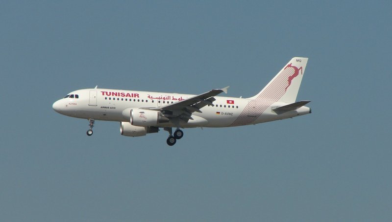 16.4.07 i HH-Finkenwerder - A319 'Alyssa' der Tunisair im Anflug auf den Airbus Werksflughafen.