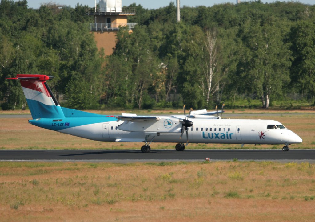 Luxair De Havilland Canada DHC-8-402Q LX-LGE nach der Landung in Berlin-Tegel am 02.06.2011