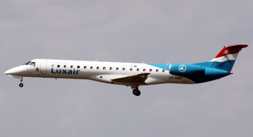 Luxair Embraer ERJ-145 LX-LGX bei der Ankunft in Berlin-Tegel am 17.09.2011