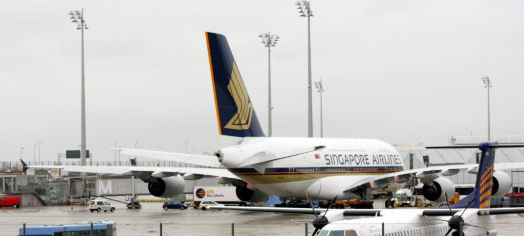 Fast nagelneuer A-380-841 (9V-SKM) von Singapore Airlines (wurde erst am 29.9.2011 an die Airline ausgeliefert) am 5.10.2011 das erste mal in Zürich. Günter Malzacher