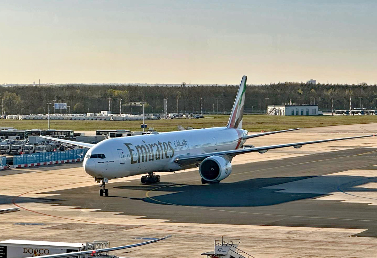 B 777-300 Emirates (Kennz. unbekannt) auf dem Rollweg in Frankfurt - 07.04.2025