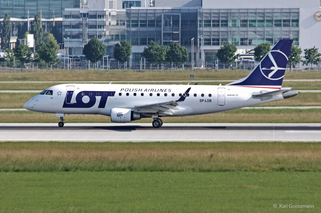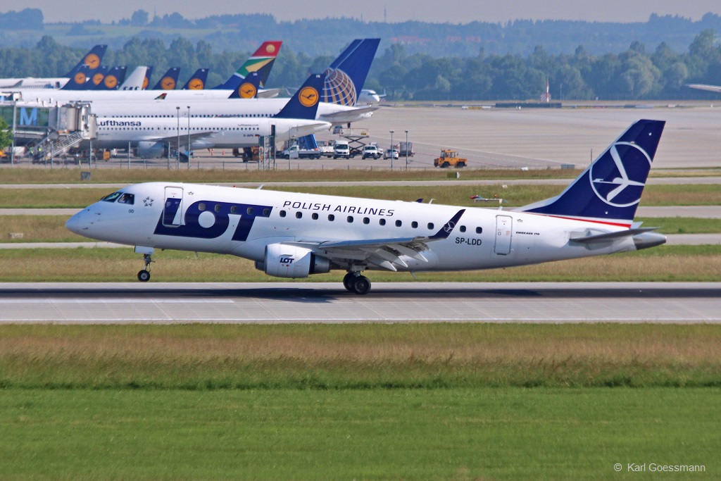 LOT Polish Airlines, SP-LDD, ERJ 170STD bei der Landung in MUC aus Breslau (WRO) 01.07.2013