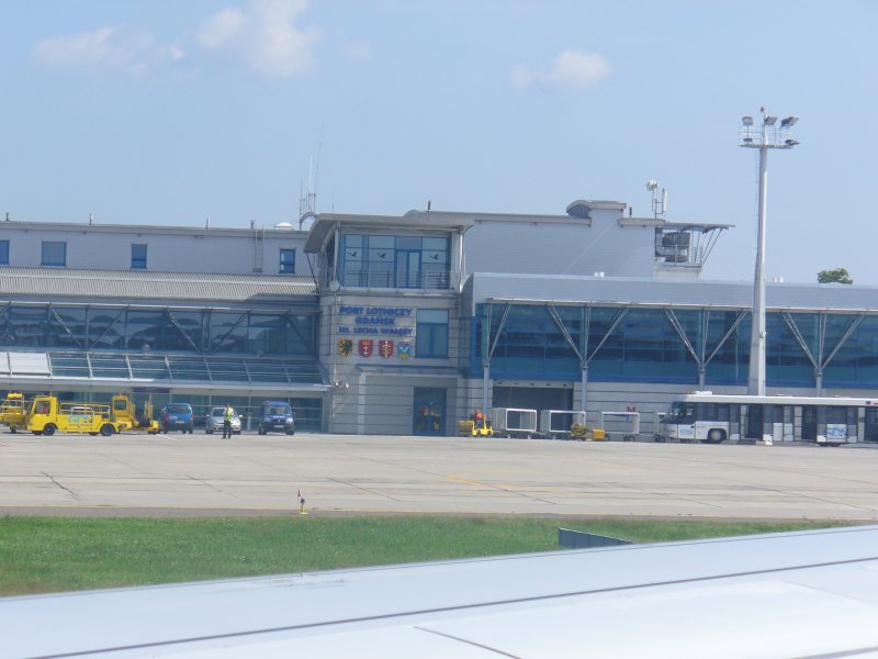Aus dem Flugzeug von Wizzair bei der Landung in Danzig ein Blick auf den Lech Walesa Airport.