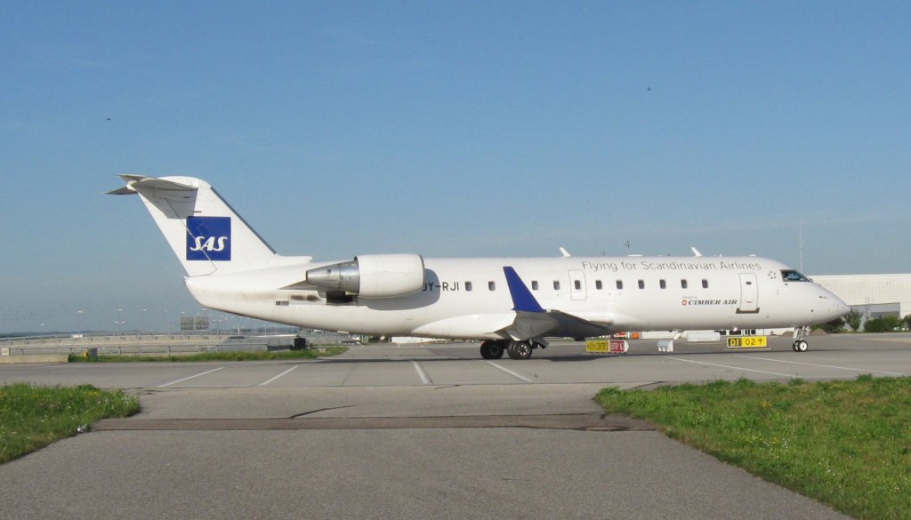 Cimber Air Canadair Regjet CRJ100 OY-RJI bei der Ankunft in Berlin-Tegel am 01.05.2010. Hier in Diensten von SAS.