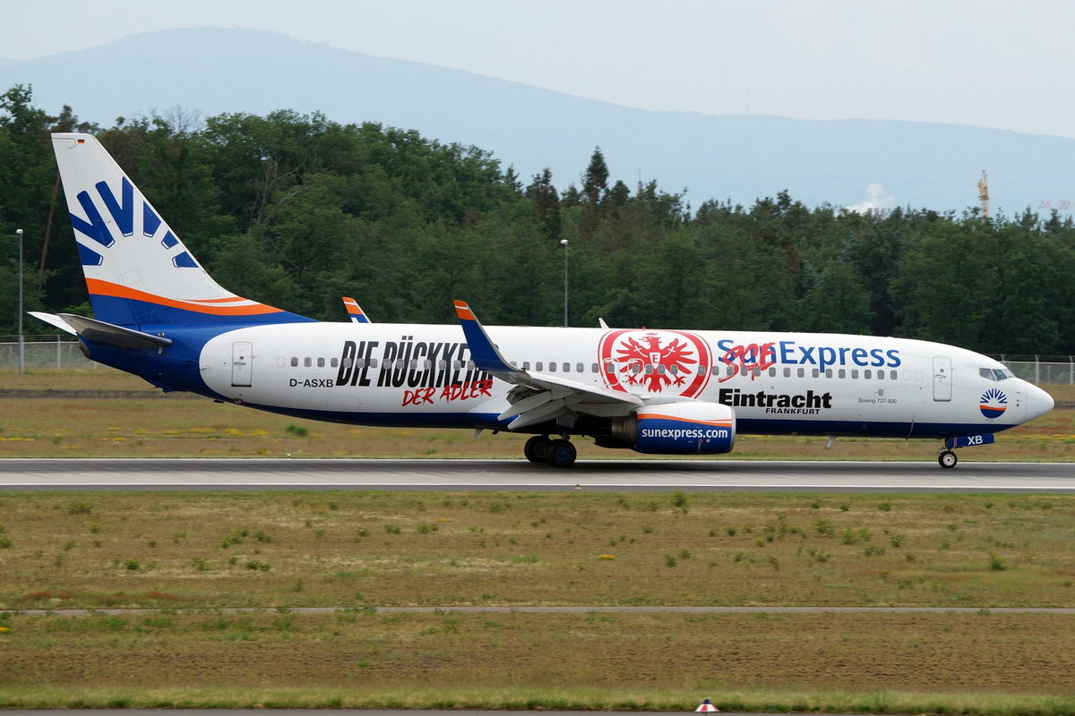 SunExpress Germany Boeing B737-8Z9(WL) D-ASXB, cn(MSN): "Eintracht Frankfurt ", Frankfurt Rhein-Main International, 20.05.2018. Eintracht Frankfurt zurück in Frankfurt nach dem gewonnenen Pokalfinale in Berlin.