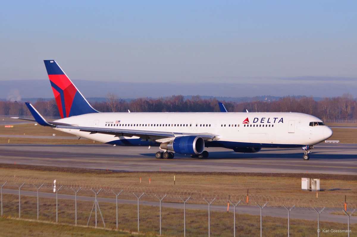 N1603 / Delta Air Lines / B767-332(ER)(W) rollt in MUC zum Start nach Atlanta (ATL) 17.12.2013