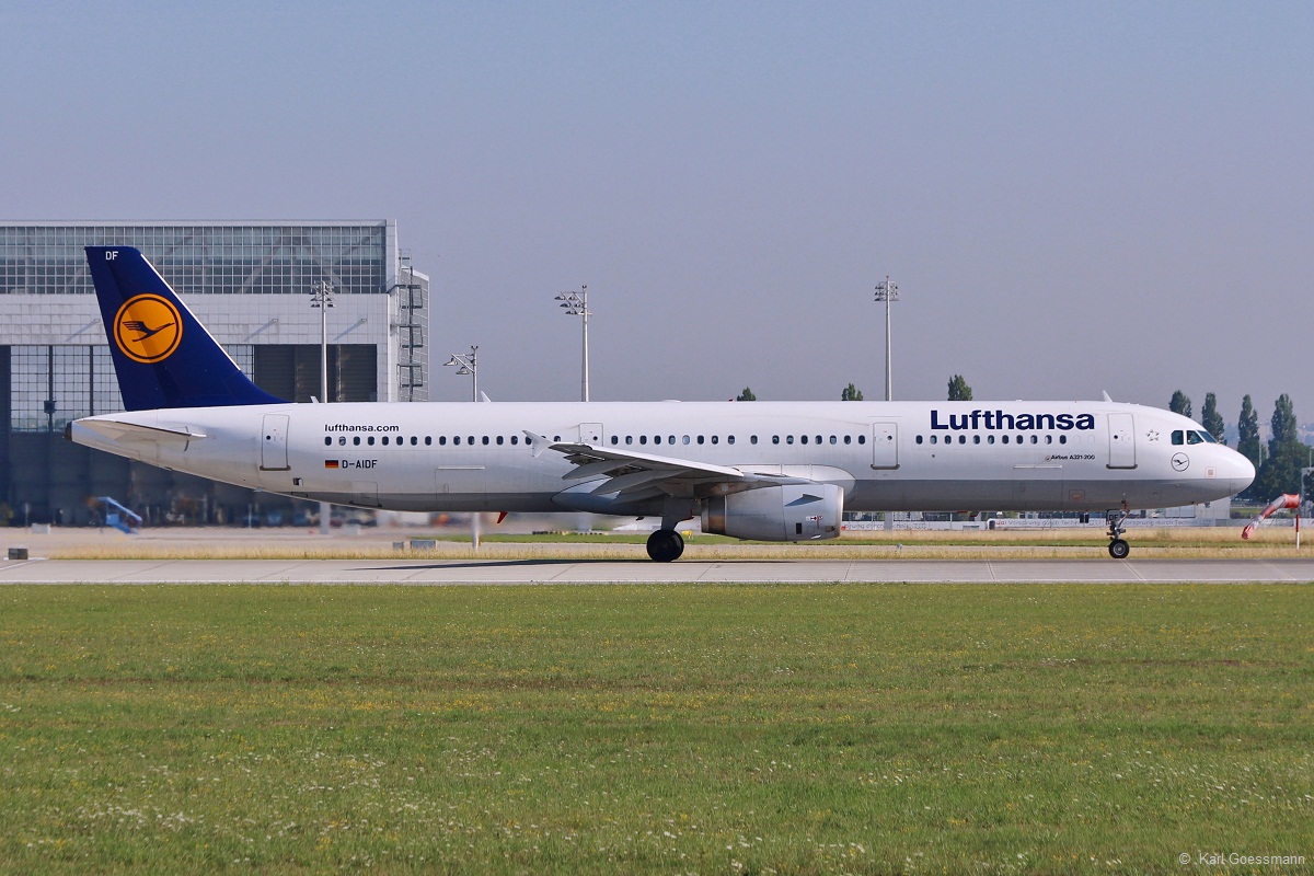 Ein 2010 ausgelieferter Airbus A 321-231 der Lufthansa mit dem Taufnamen Pforzheim und der Kennung D-AIDA auf dem Hamburg Airport am 19.07.2014 Marvin B.