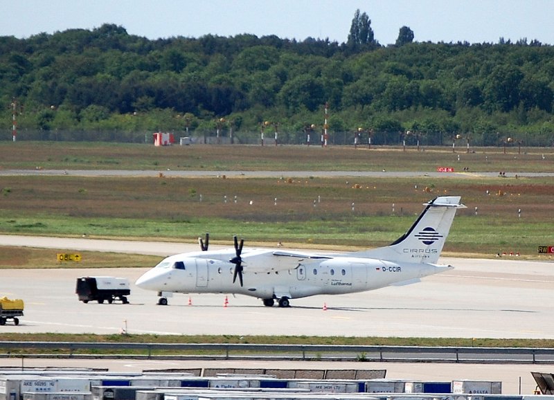Hier ist eine Dornier Do-328 Jet der Cirrus Airlines (D-CCIR) gerade in Berlin-Tegel gestartet, 31.07.09.