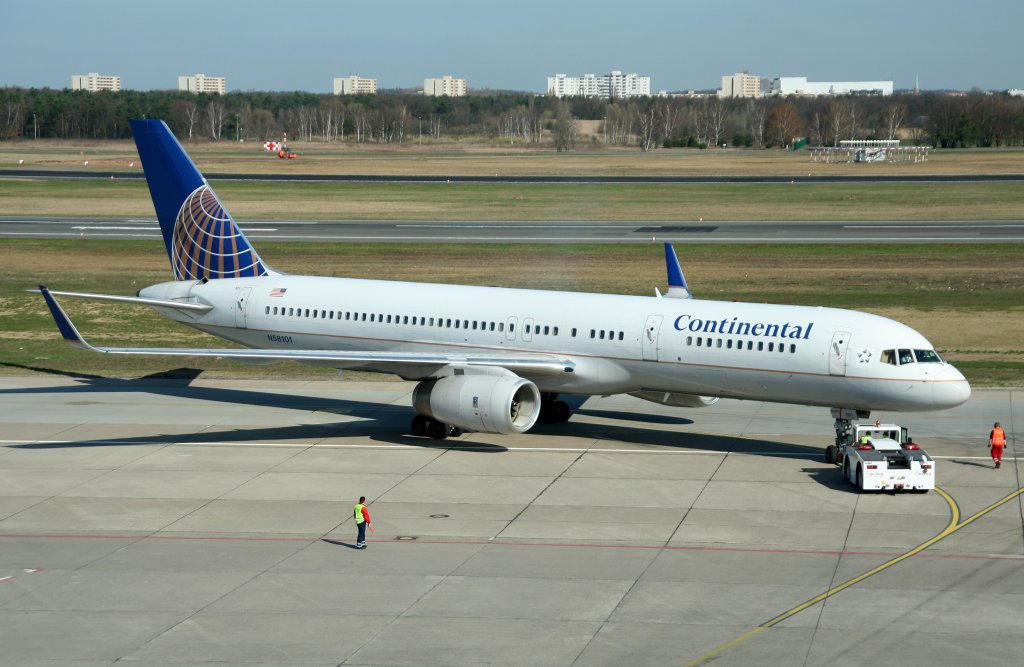 Continental Airlines B 757-224 N58101 beim Pushback auf dem Flughafen Berlin-Tegel am 02.04.2010