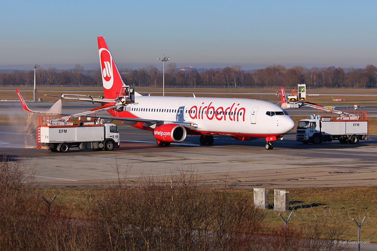 D-ABKM / Air Berlin / B737-86J(W) beim Deiceing in MUC vor dem Start nach Hamburg (HAM) 30.12.2013