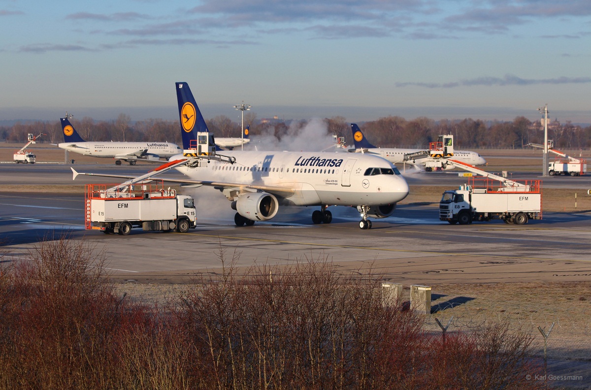 D-AILW "Donaueschingen" / Lufthansa / A319-114 in MUC beim Deiceing vor dem Start nach Manchester (MAN) 30.12.2013