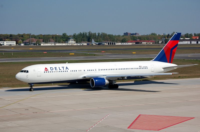 Delta Airlines B 767-332(ER) N1608 mit Winglets am 28.06.2009 auf dem Flughafen Berlin-Tegel, Video unter Flugzeugvideos.eu