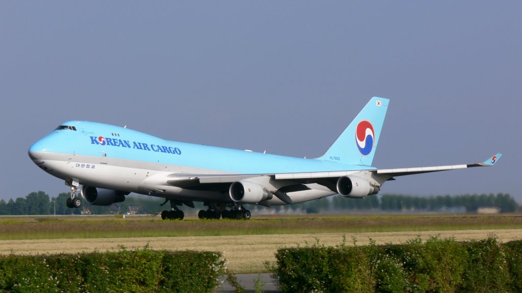 Boeing 747-400 4B5F von Korean Air mit der Kennung HL-7602 beim Start in Amsterdam