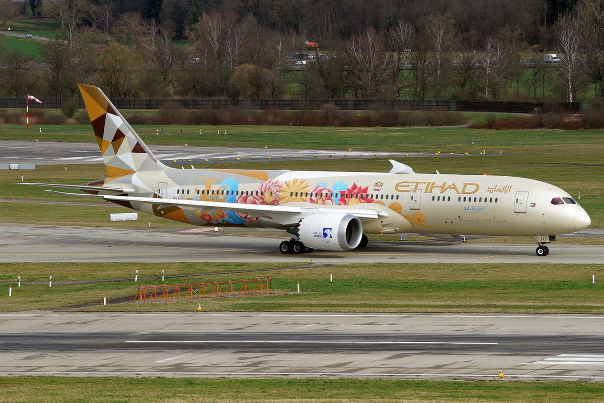 Etihad Airways, Boeing 787-9 Dreamliner A6-BLO, cn(MSN): 39660, "ADNOC - Choose Thailand", Zürich-Kloten Airport, 11.03.2020.