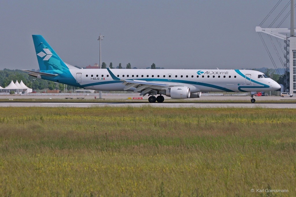 Air Dolomiti, I-ADLQ, ERJ 195LR bei der Landung in MUC aus Mailand (MXP) 17.06.2013