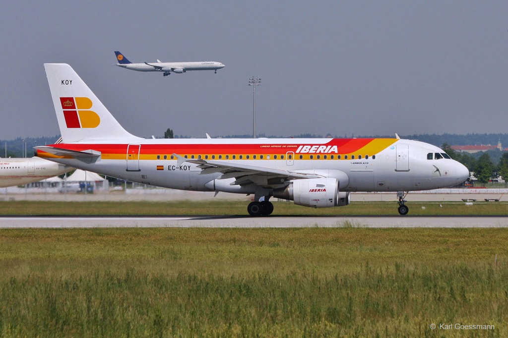 Iberia, EC-KOY "Vencejo", A319-111 beim Start in MUC nach Madrid (MAD) 18.06.2013