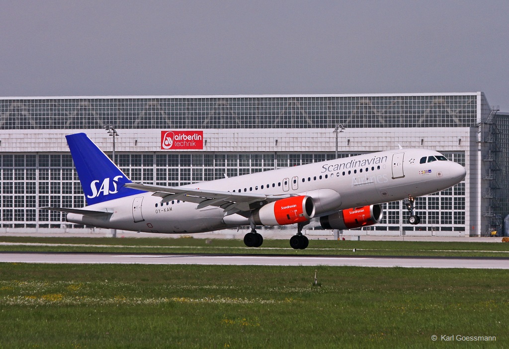 SAS Scandinavian, OY-KAM  Randver Viking , A320-232 bei der Landung in MUC aus Kopenhagen (CPH) 15.05.2013