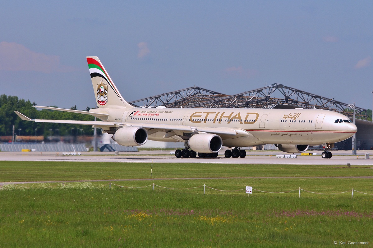 A6-EHB / Etihad Airways / A340-541 in MUC beim Start nach Abu Dhabi (AUH) 19.05.2014