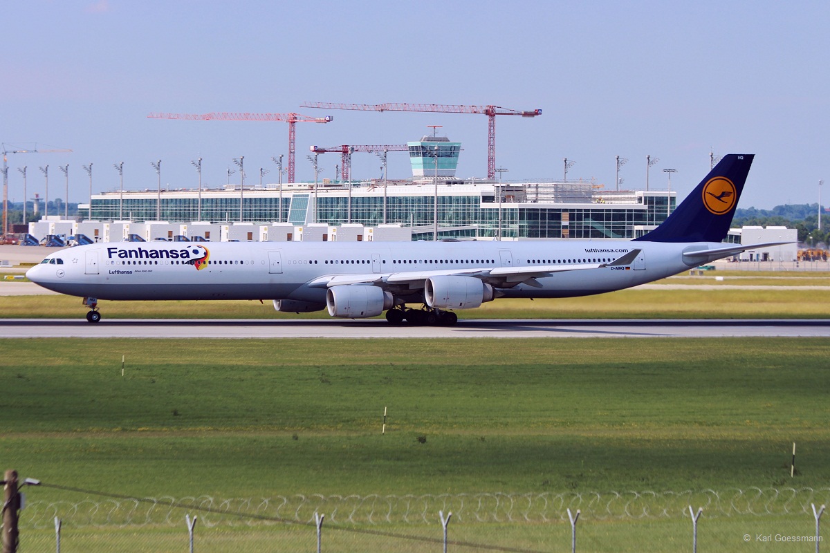 D-AIHQ / Lufthansa / A340-642  Fanhansa  in MUC beim Start nach San Francisco (SFO) 13.06.2014