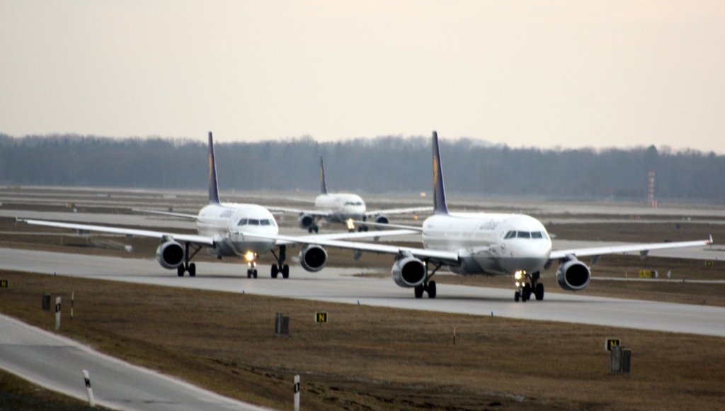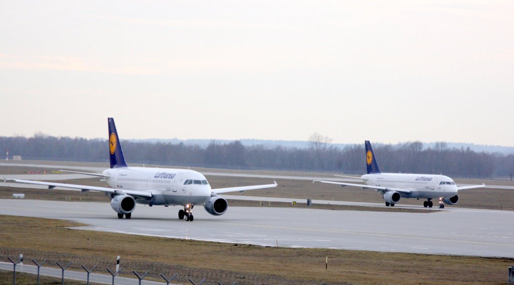 Lufthansa Airbuse Auf dem Weg zur Startbahn am Flughafen München 11.02.2011