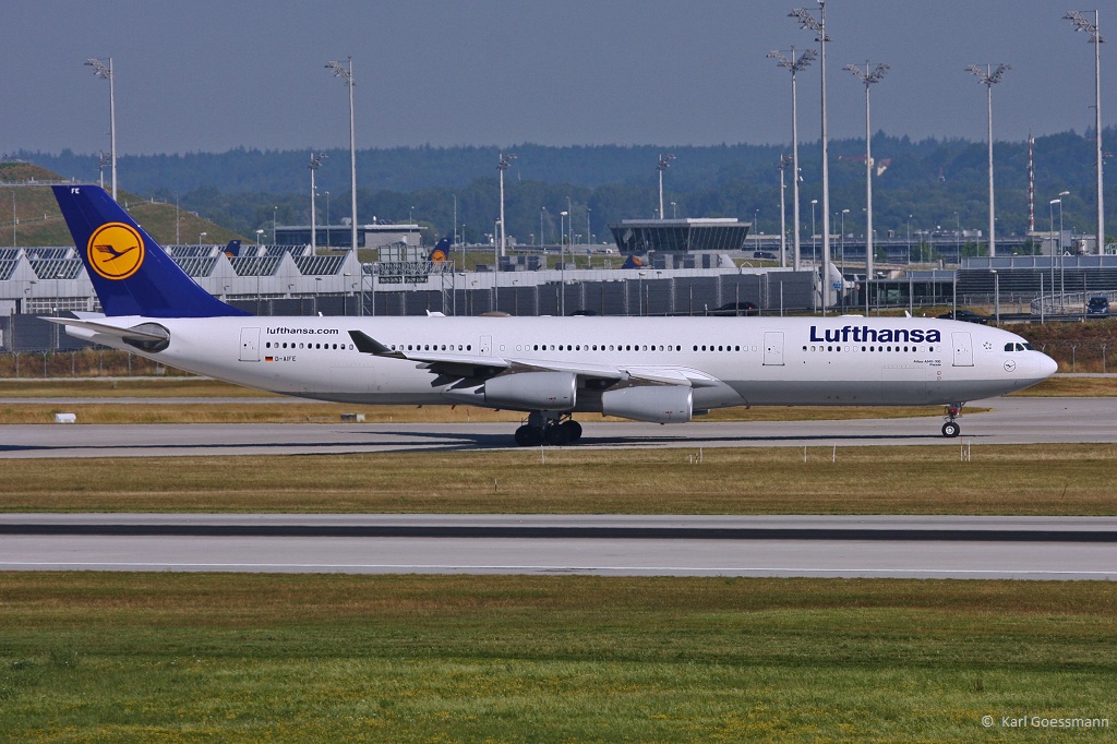 Lufthansa, D-AIFE "Passau", A340-313X nach der Landung in MUC aus Sao Paulo (GRU) 17.07.2013