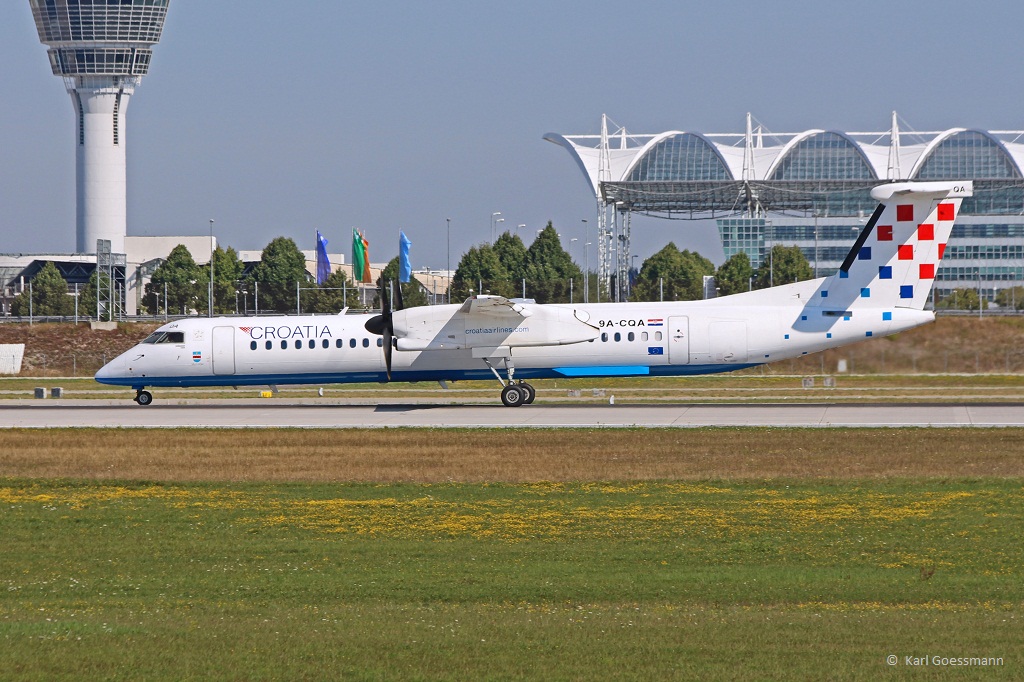 9A-CQA "Slavonija" / Croatia Airlines / DHC 8-402Q beim Start in MUC nach Split (SPU) 17.08.2013