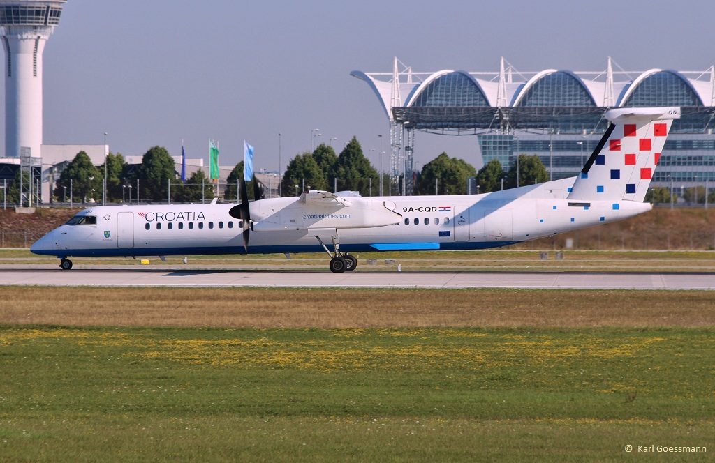 9A-CQD  Dalmacija  / Croatia Airlines / DHC 8-402Q in MUC beim Start nach Zagreb (ZAG) 17.08.2013