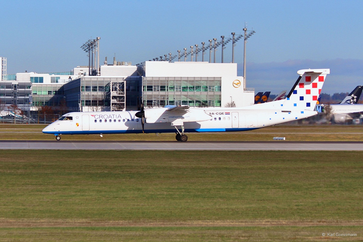 9A-CQE "Zagorje" / Croatia Airlines / DHC 8-402Q beim Start in MUC nach Split (SPU) 25.11.2013