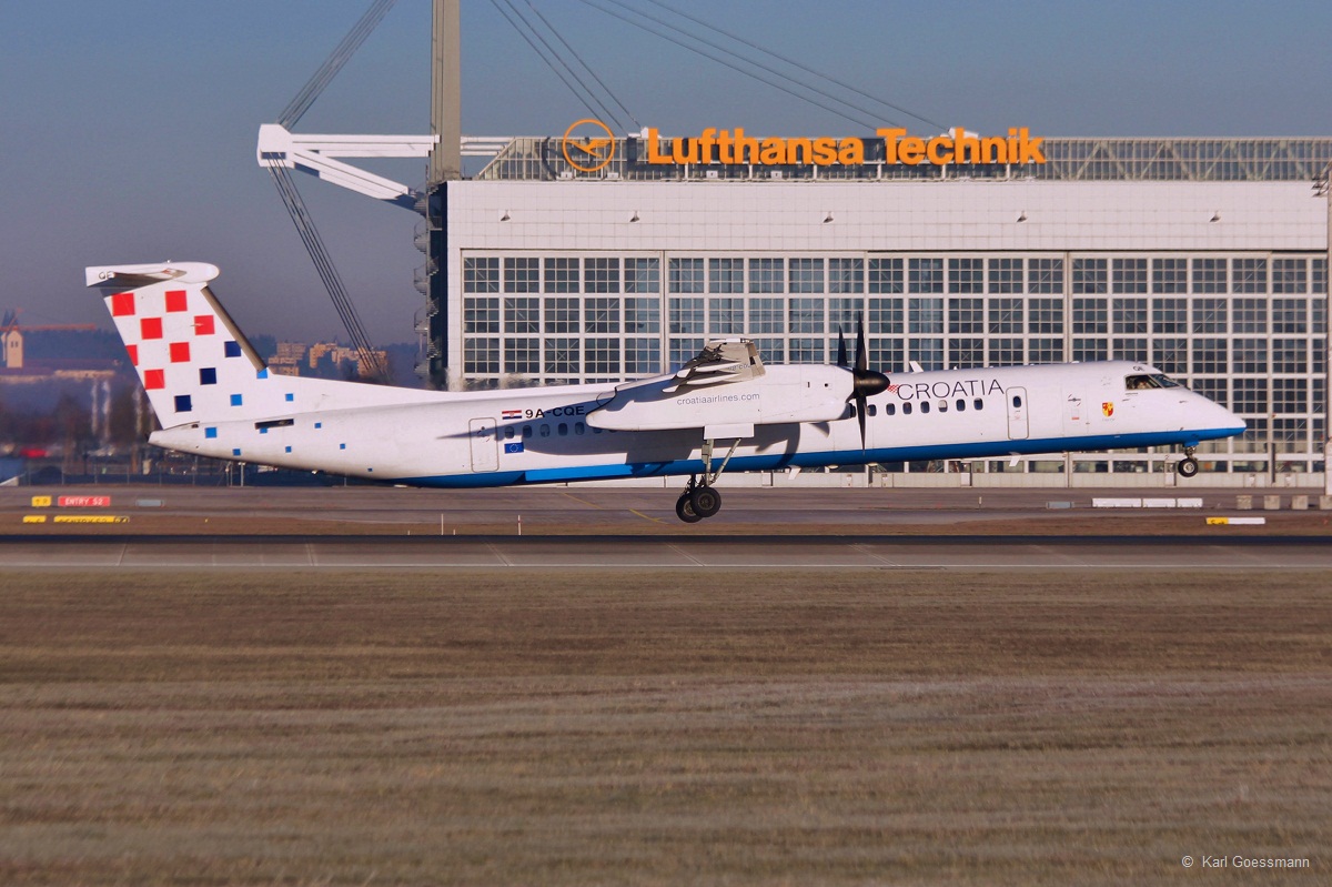 9A-CQE "Zagorje" / Croatia Airlines / DHC 8-402Q in MUC bei der Landung aus Zagreb (ZAG) 28.12.2013