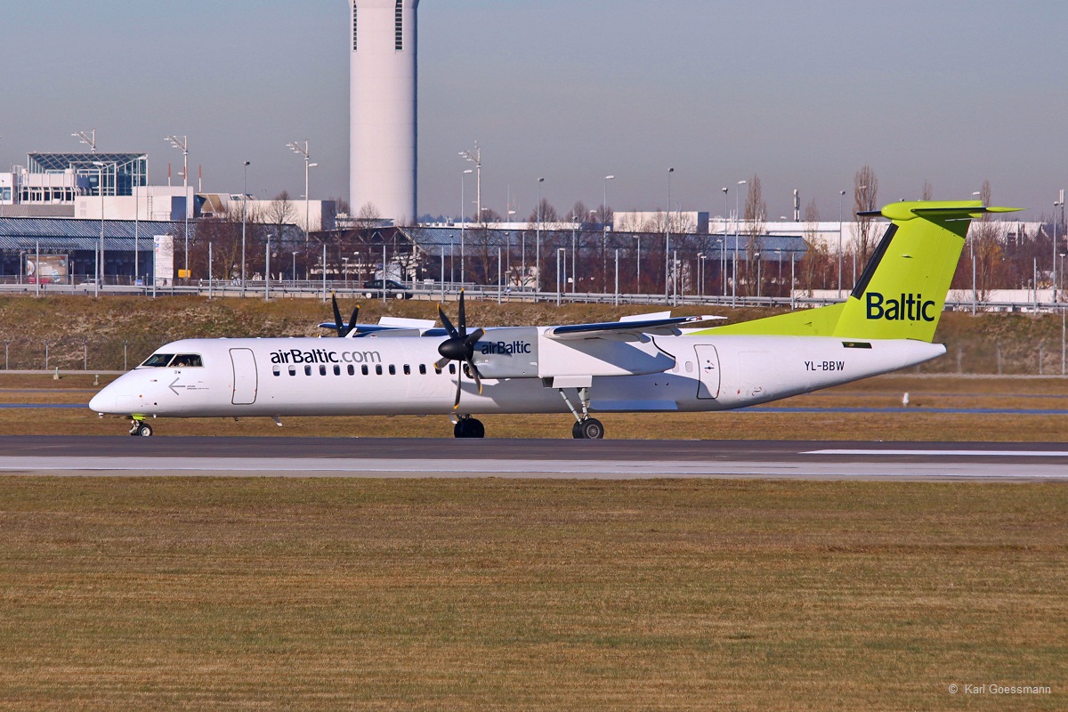 YL-BBW / Air Baltic / DHC 8-402Q wartet in MUC auf Startfreigabe nach Riga (RIX) 16.12.2013
