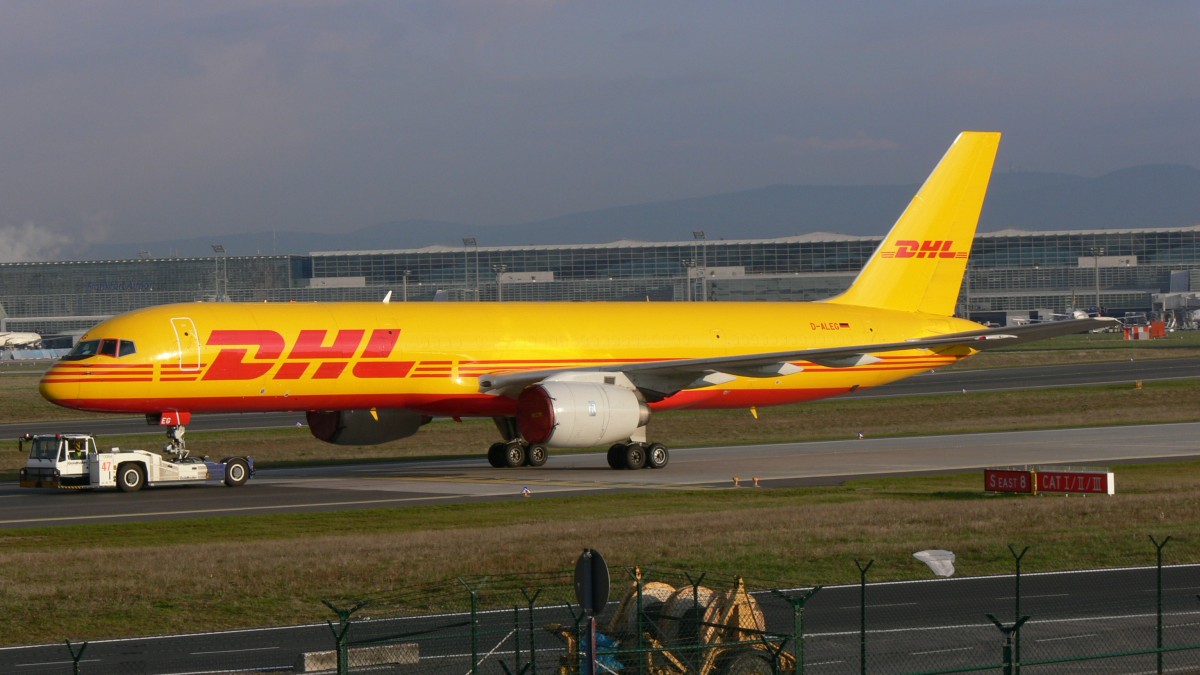 Eine Frachtmaschine Boeing 757-236(D-ALED)der DHL steht am 22.04.2012 auf dem Vorfeld des Frankfurter Airports.