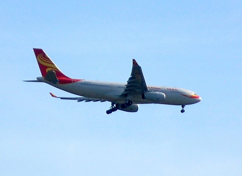 Ein Flugzeug der Hainan Airlines (Direktflug aus Peking), diese Gesllschaft gehört der Grand China Air fliegt aber noch unter eigenem Label, es ist eine A 330-243 Registrier-Nr.B-6088, 06.05.09 Berlin Pankow Richtung Berlin Tegel. Volker Stöckmann
