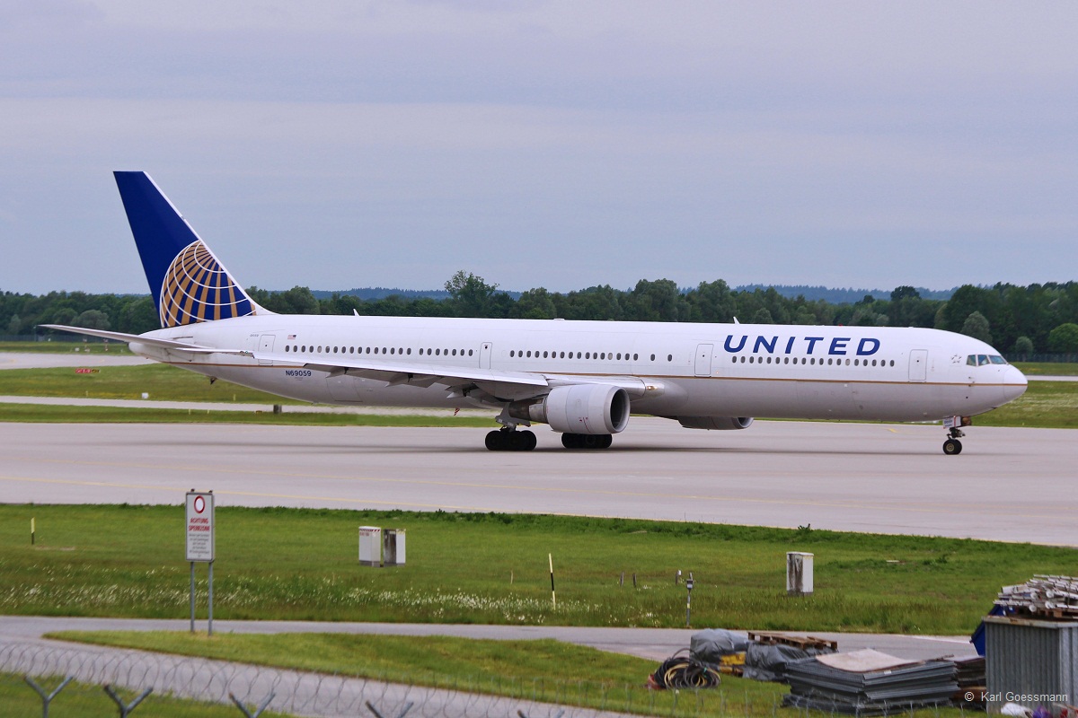 N69059 / United Airlines / B767-424(ER) rollt in MUC zum Start nach Houston (IAH) 23.05.2014