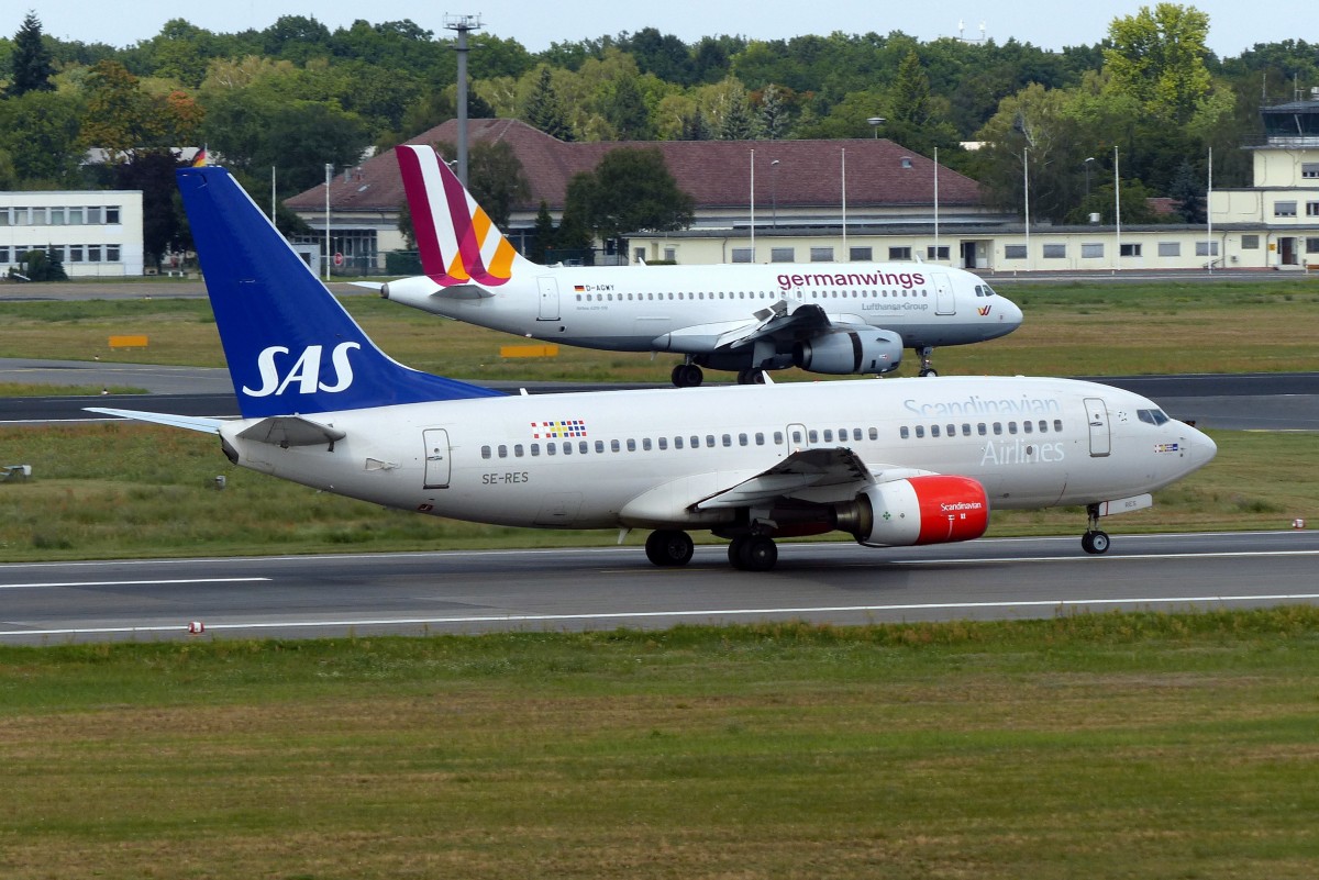 SAS Scandinavian, B737-7BX SE-RES cn30737 /687 und germanwings A319 D-AGWY. In Berlin -Tegel im August 2014.