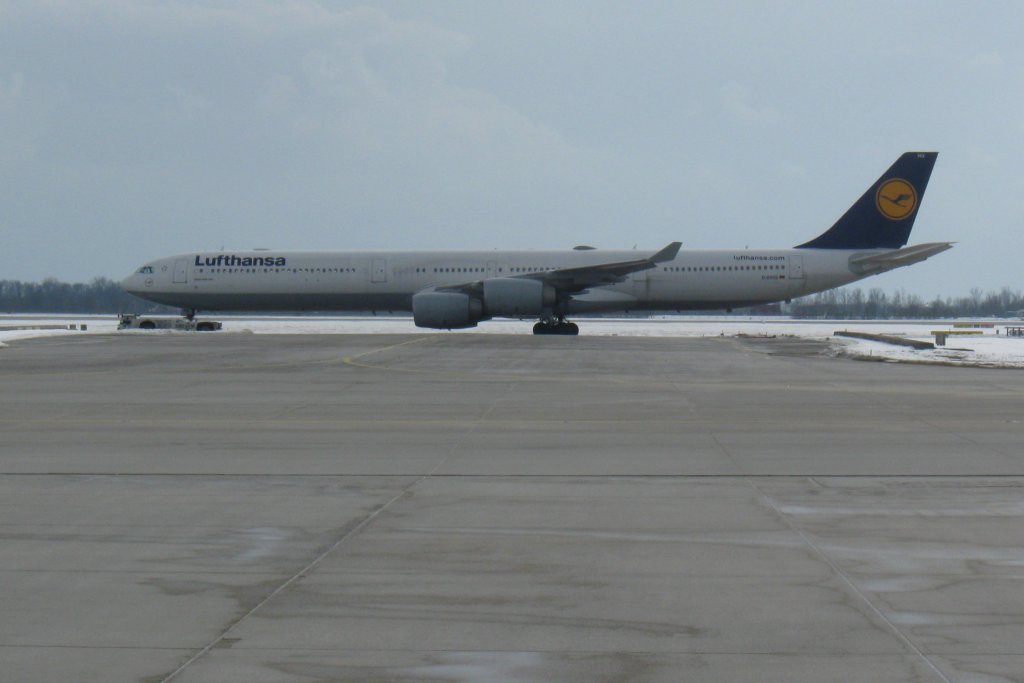 Lufthansa, D-AIHN, Airbus A 340-600 (ohne Namen), 2009.06.20, MUC, München, Germany