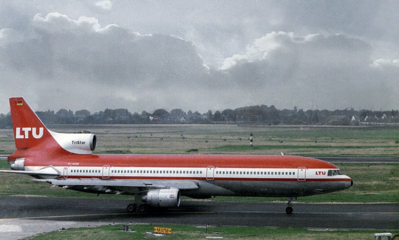 Düsseldorf 1976 Heute ist sie längst nicht mehr zu sehen! Lockheed-TriStar 1011. 1984 verließen die letzten Maschinen die Werkshallen. Den Antrieb, spendeten 3 Rolls-Royce Triebwerke. (RB 211) Sie wurden u.a. auch in der Boeing 747 verwendet!