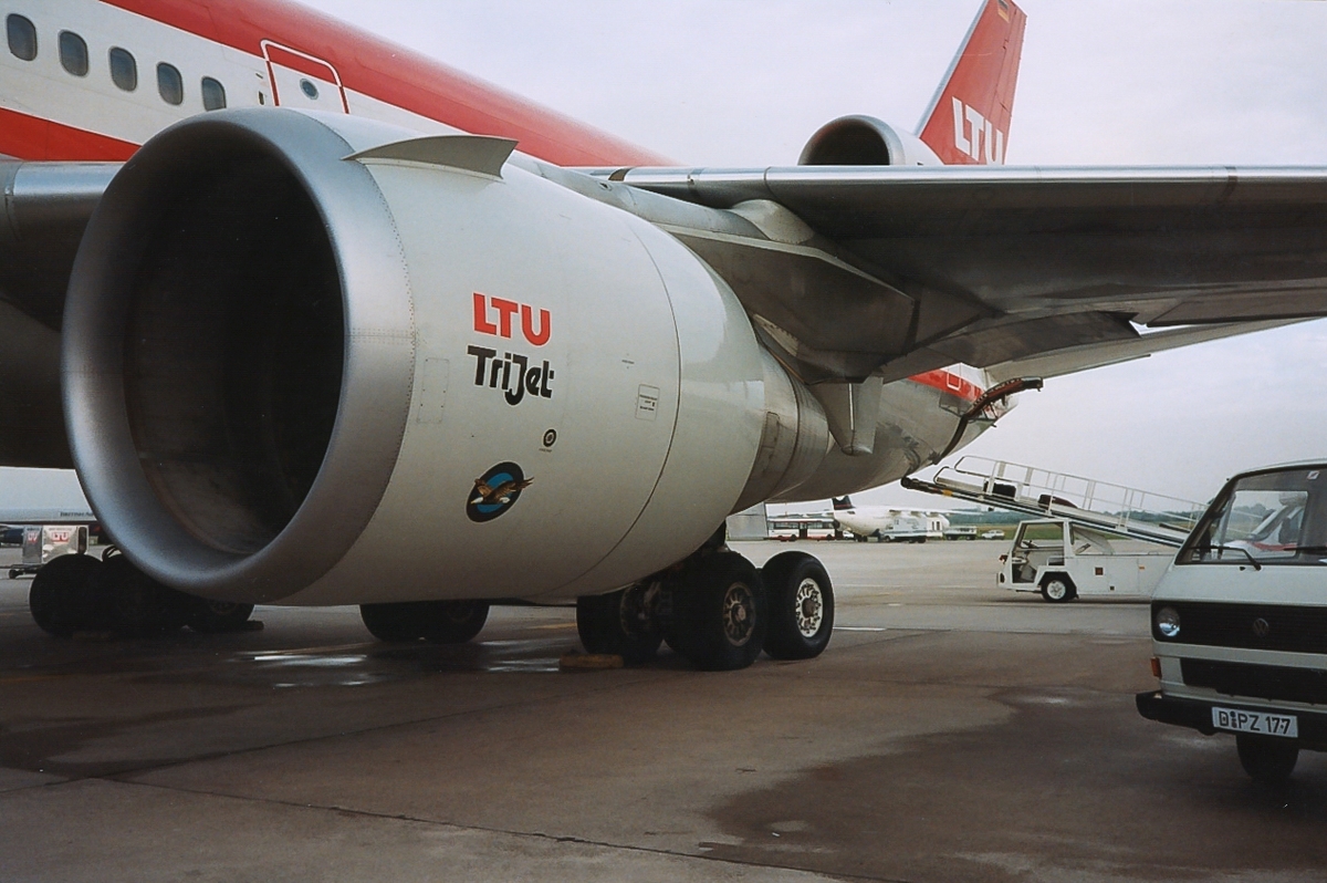 LTU McDonnel Douglas MD-11 D-AERW nach der Ankunft aus Puerto Plata in Düsseldorf. Die Aufnahme ist im Sommer 1996 während des Deboardings entstanden. Daniel W.