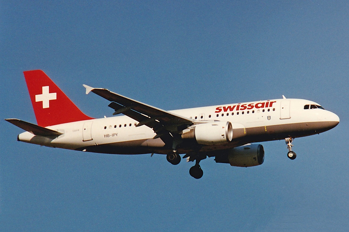 SWISSAIR, HB-IPY, Airbus A319-112, msn: 621, "Höri", März 1997, ZRH Zürich, Switzerland. Scan aus der Mottenkiste.