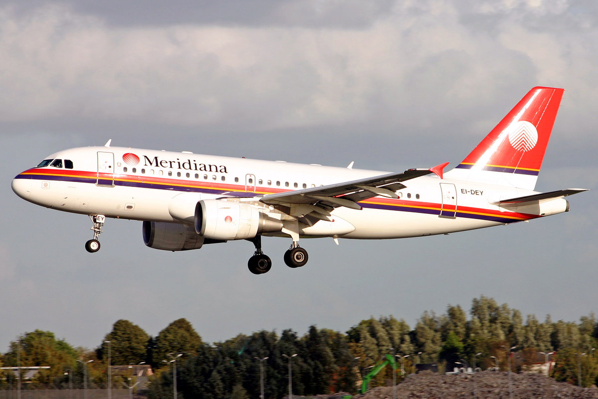 Meridiana, EI-DEY, Airbus A319-112, msn: 1102, 14.September 2004, AMS Amsterdam, Netherlands.
