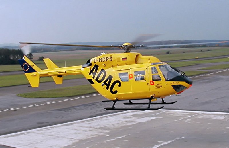 ADAC-Hubschrauber, BK 117, bei Zwischenlandung zur Betankung in Aalen-Elchingen. Sommer 2004.