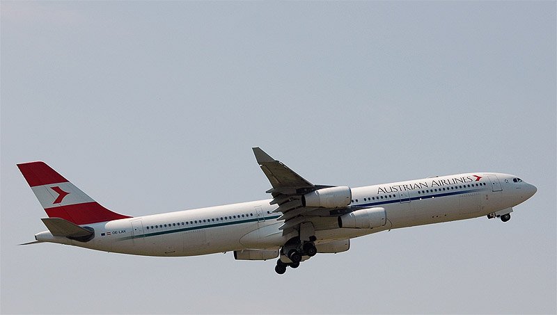 Ein Bild aus besseren Zeiten! A340-300 der AUA beim Abflug aus Wien (VIE). Die 340 sind mittlerweile fast zur Gänze verkauft! Aufnahme vom 3.8.2004 / 11:33h